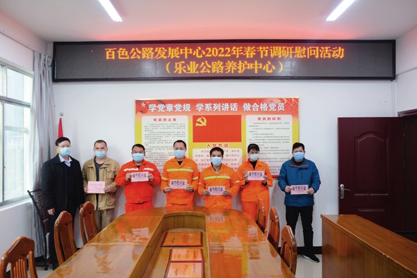 新春将至,岁寒情浓暖人心。1月18日,百色公路发展中心党委书记罗永福一行到乐业公路养护中心机关、新化养护站开展春节调研走访慰问一线公路养护职工活动,详细了解基层职工工作、生活情况,倾听职工的心声,向一线职工送上节日的组织关怀和新春祝福。同时鼓励生活困难职工一定要坚定信心,共同战胜暂时的困难。