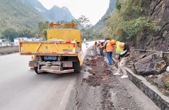 在抓好疫情防控的同时,主动出击,迅速推进公路日常养护工作,紧抓安全生产,做好公路应急保障准备工作。因为提前部署准备得当,田阳公路养护中心落实行动,于15日上午七时开始组织人员开展路面清障保畅行动,除了撤去相关的隔离路障设施,第一时间对辖区公路路面、绿化带、村落路旁等处的垃圾、堆物进行清除,对路面出现的病害损坏、隐患及时修补、消除,同时保持边沟、排水沟的清洁畅通。不到24小时,共出动养护作业车13车次、65人次,共清扫路面102公里;清理水沟26公里;修复路肩128.5平米;清除路面堆积物345立方;路边垃圾279平方。16日上午,田阳公路养护中心中心再次加派人手,全面开展公路安全巡查,重点对隧道、桥梁、公路附属设施进行隐患排查,及时处理发现的安全隐患,切实做到早发现、早报修、早修复,确保道路安全畅通。