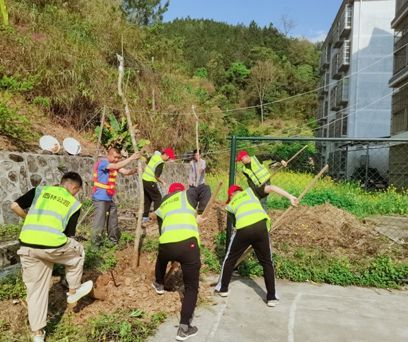 一年之计在于春,在这阳春三月,伴随着阵阵春风,植树现场处处洋溢着热火朝天的劳动景象,党员、团员们三五一组,分工合作,挖树墩、扶树苗、培土浇水,干劲十足,大家热情洋溢、默契十足,踩着泥泞,挥动着铁锹,铲土挖墩、齐心协力为树苗搬新家,一棵棵新树苗,凸显着蓬勃朝气,为初春的大地平添丝丝活力。