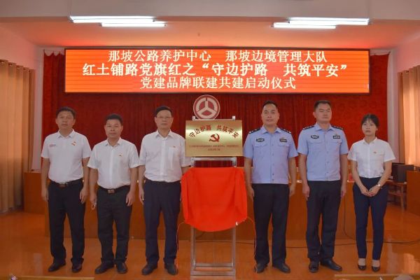 为扎实推进“五基三化”攻坚年行动,巩固拓展党史学习教育成果,实现党组织优势互补,推动党建工作新突破,那坡公路养护中心结合那坡边境优势,与那坡边境管理大队联建共治,打造“红土铺路党旗红之守边护路 共筑平安”党建品牌,发挥守土固边、保路畅安,实现兴边富民护路多赢目标,开启双方“组织联建、资源联享、活动联开、实事联办”的良好开端。