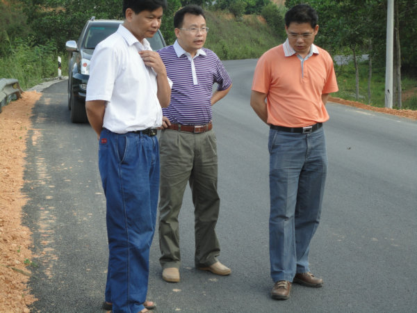 在省道206线、省道210线多个路面大中修施工点,黄副局长都认真细致地查看,对工程完成情况、施工工艺把握程度、施工质量、安全管理等方面的问题向随行人员仔细了解,强调从实际出发来解决问题,抓好质量管理工作。