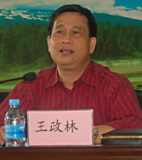 图为(左起)支队负责人李向东同志、王政林局长、鲁万友书记