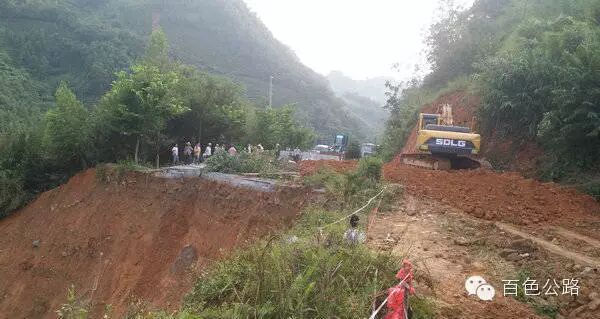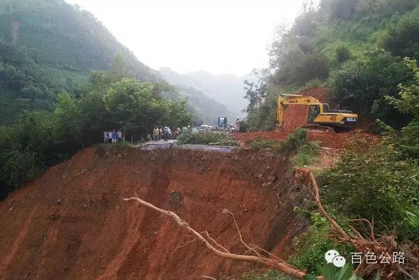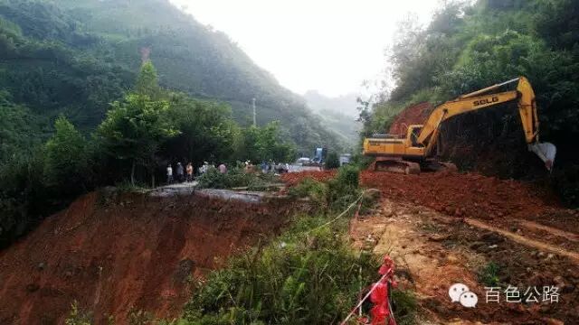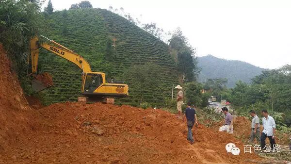 2015年8月27日8时15分省道206线乐业至永乐K51+600、K51+400、k51+200、K48+300、k42+700(凌云加尤镇下伞村至百陇村)路段,因下暴雨公路上边坡塌方覆盖整幅路面,导致交通中断,现已在中断路段设置交通告知牌及安全标志,及时提醒前往乐业方向车辆绕国道324线到田林河口再绕县道794线往乐业通行。目前养护部门正在组织人员、机械进行抢通,预计2015年9月10日18 时00分恢复通车。