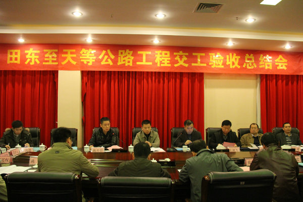 2015年12月28日~30日,由广西新发展交通集团有限公司田东至天等公路建设办公室组织田东至天等公路工程交工验收总结会在田东县召开,经过检查组内查外验,该工程评为合格工程,会议听取和审议了工程项目执行情况、工程设计执行情况及工程监理工程报告,同意该工程交工验收,投入试运行。
