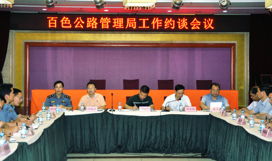 2017年5月3日下午 ,百色公路管理局在市局二楼会议室召开工作约谈会,会议由百色公路管理局副书记罗永福同志主持,市局各分管领导发表重要讲话。路政支队领导、各县公路局局长及路政大队大队长参加会议。