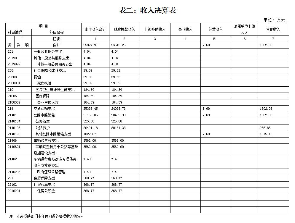 表二:收入决算表
