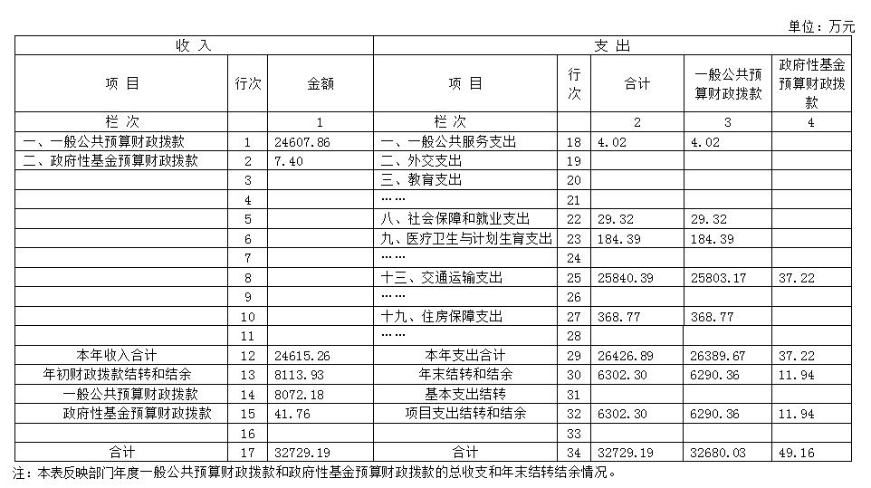 注:本表反映部门本年度的总收支和年末结转结余情况。