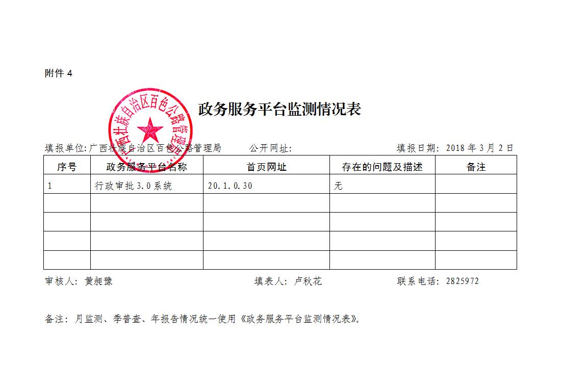 政务服务平台监测情况表(2018年3月2日)